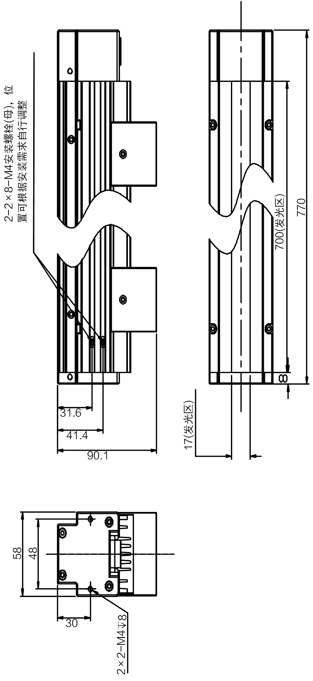 | 发光区尺寸 | 700 mm × 17 mm | |