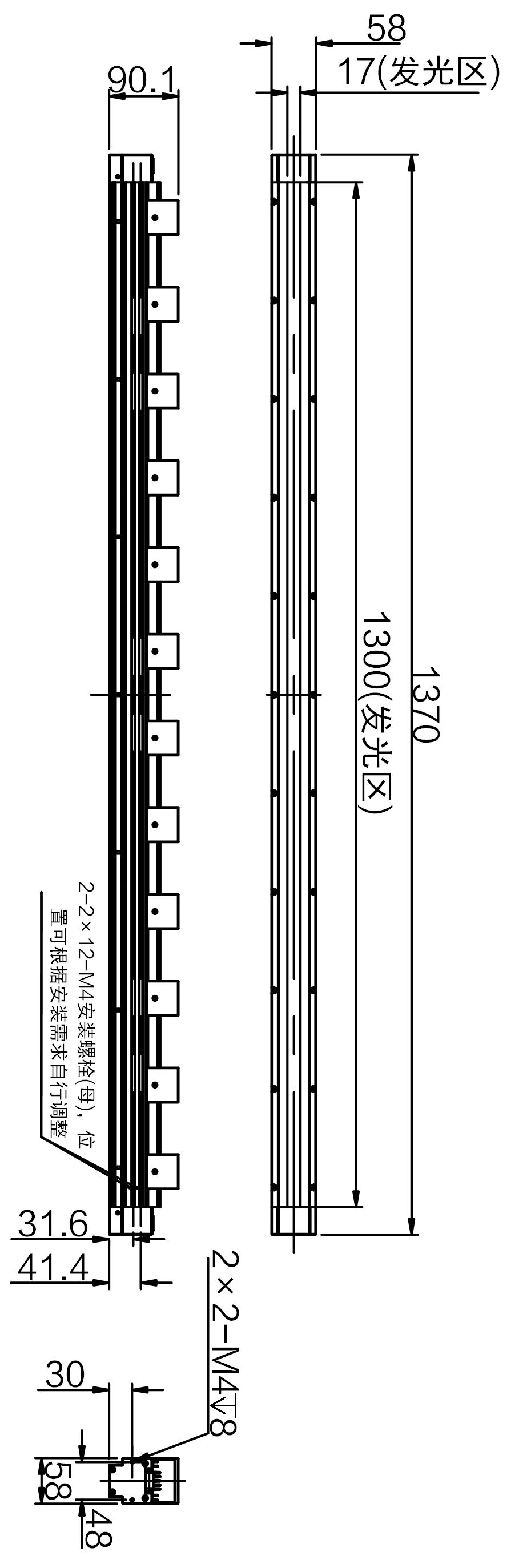 | 发光区尺寸 | 1300 mm × 17 mm | |