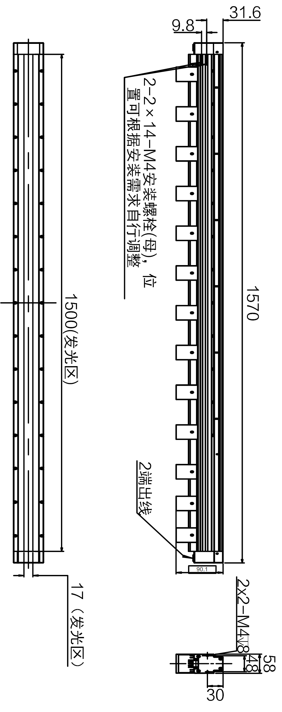 | 发光区尺寸 | 1500 mm × 17 mm | |