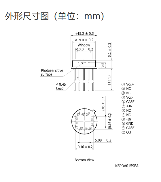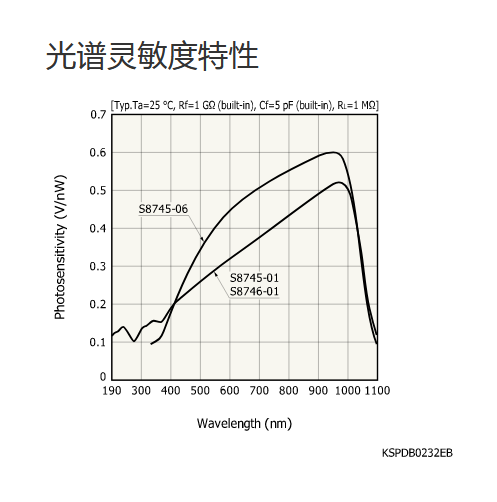 典型值 Ta = 25°C,VCC = ±15V,RL = 1MΩ,感光灵敏度:λ = λp,噪声等效功率:λ = λp,f = 10Hz,除非另有说明 |