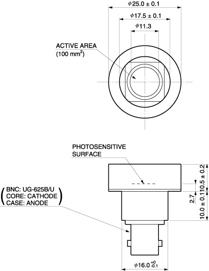 典型值 Ta=25°C,感光灵敏度:λ=λp,暗电流:VR=10 mV,上升时间:VR = 0 V,结电容:VR = 0 V,f = 1 kHz,除非另有说明 |