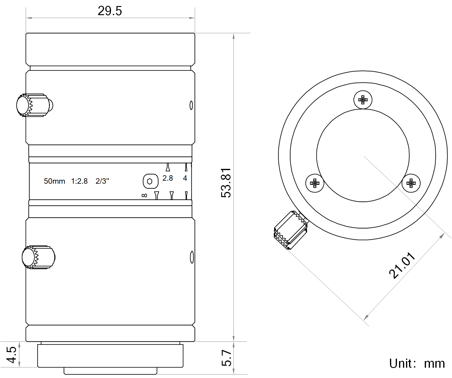 | 名称 | 50mm,F2.8,2/3",800万分辨率,C接口镜头 | |