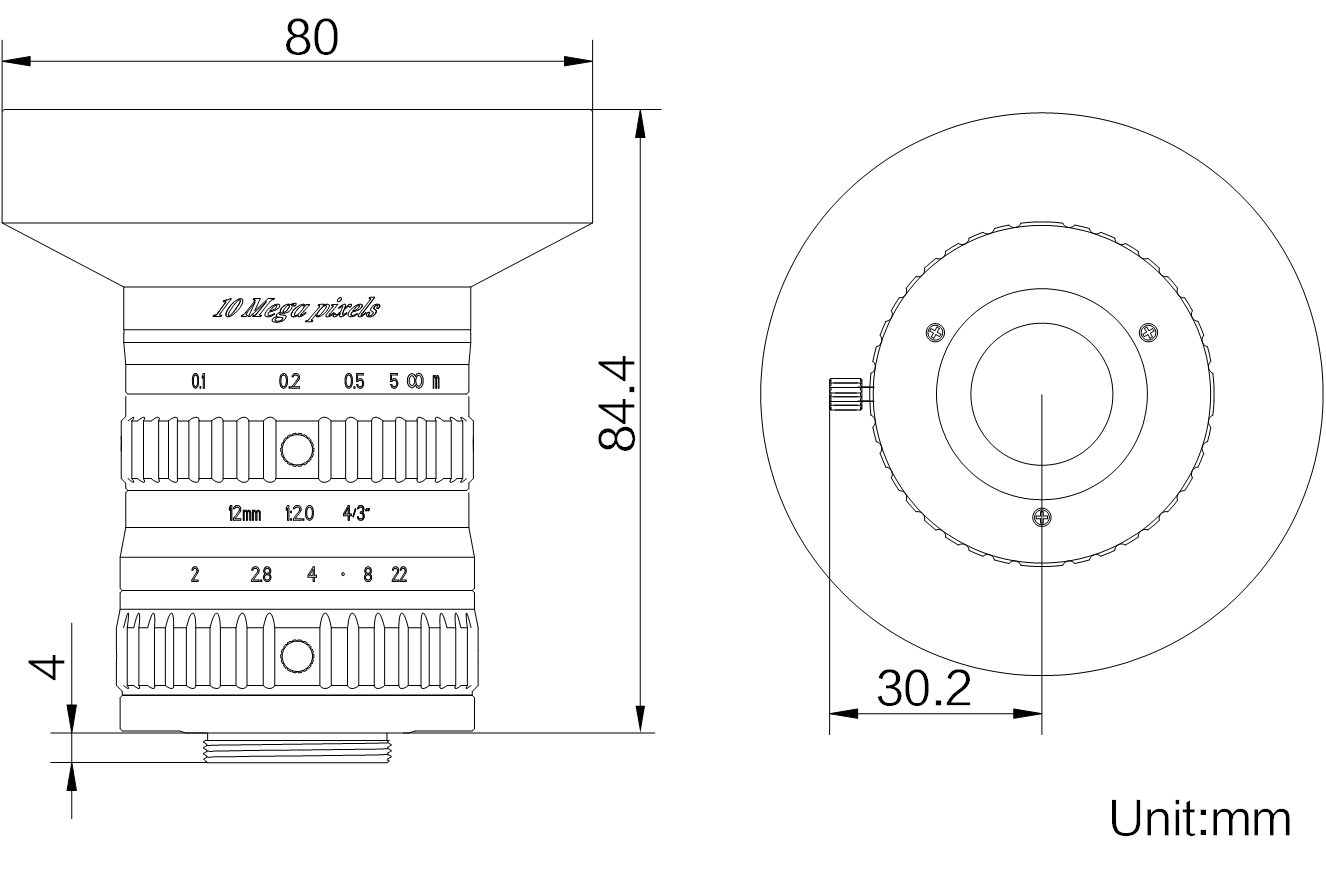 | 名称 | 12mm,F2.0,4/3",1000万分辨率,C接口镜头 | |