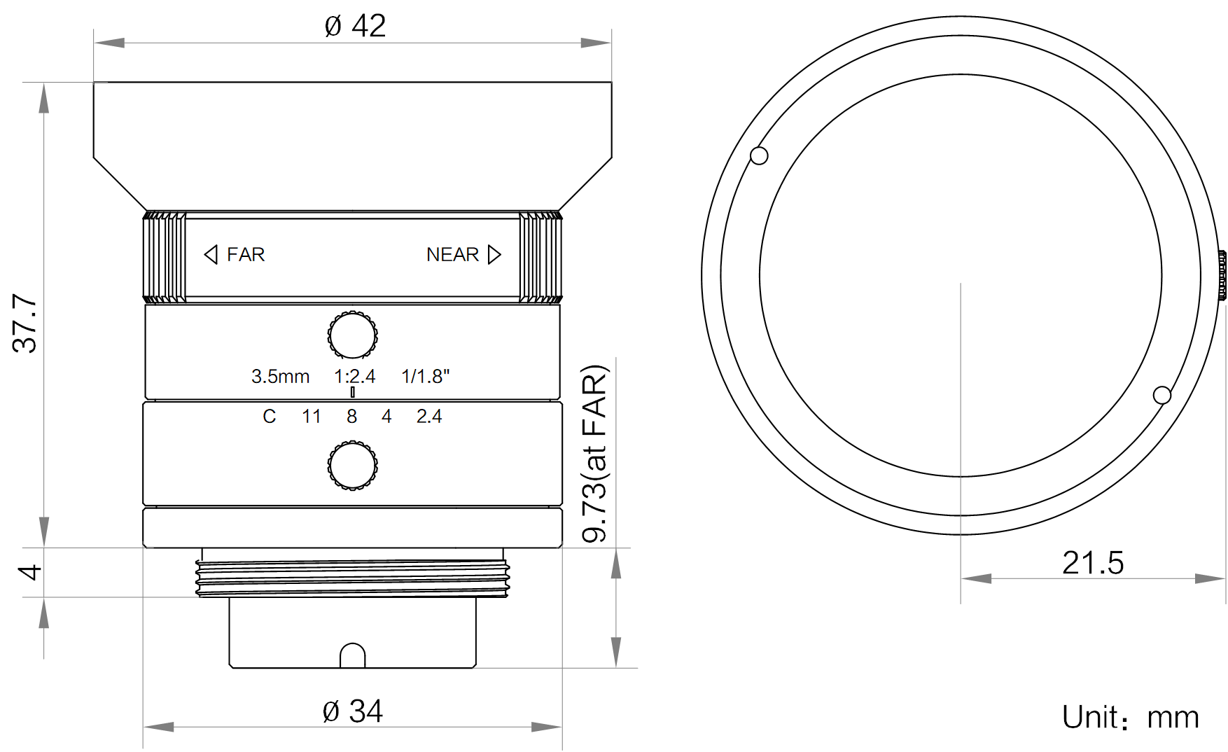 | 名称 | 3.5mm焦距, 100万分辨率镜头,1/1.8”,F2.4 | |