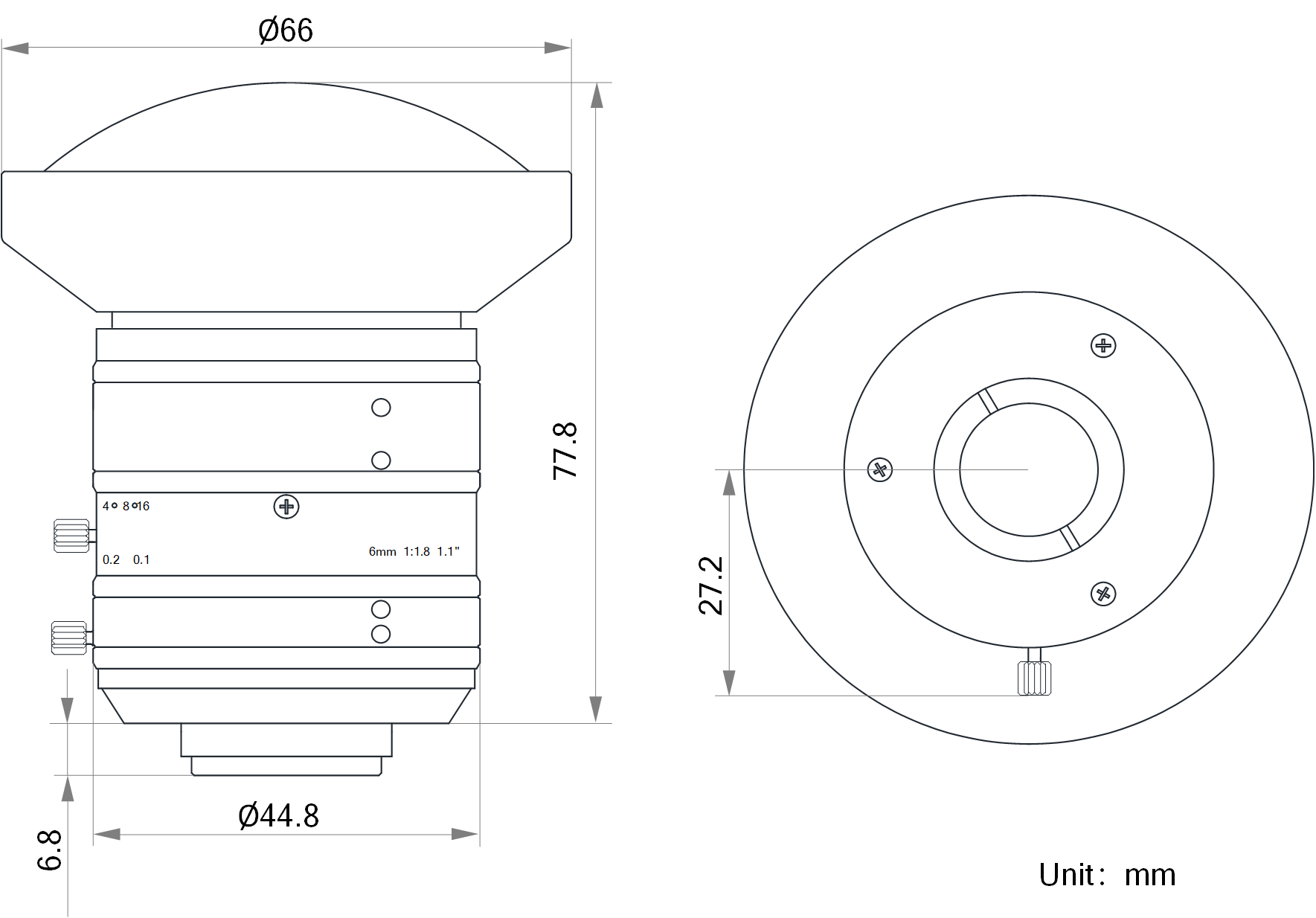 | 名称 | 6mm,F1.8,1.1",1200万分辨率,C接口镜头 | |