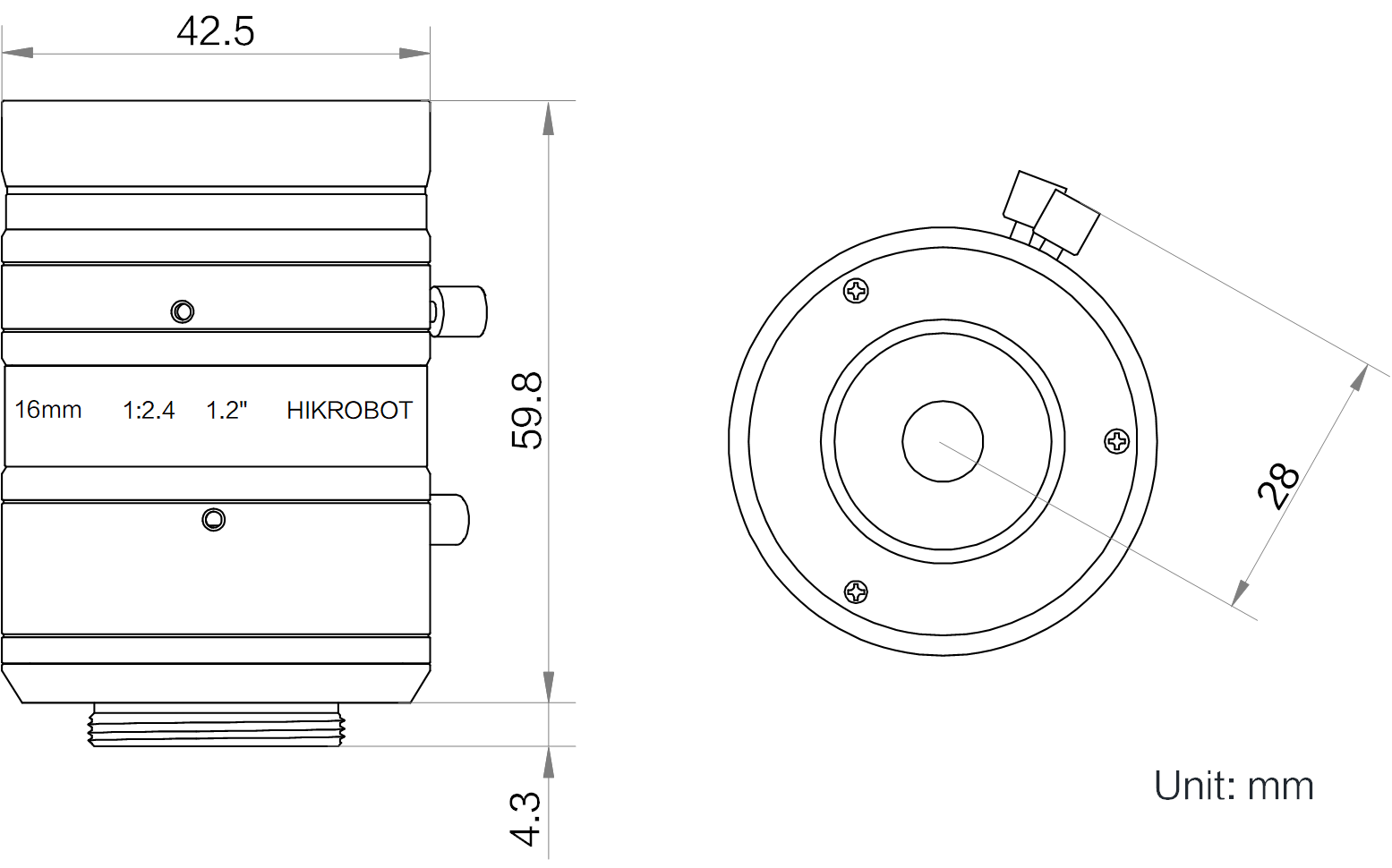 | 名称 | 16mm,F2.4,1.2",2500万分辨率,C接口镜头 | |