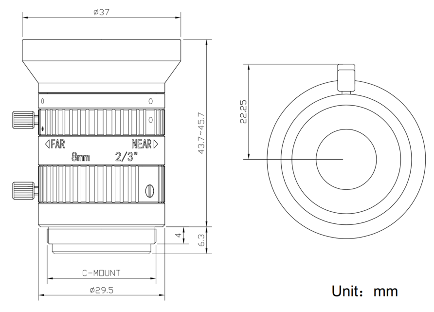 | 名称 | 8mm,F2.4,2/3",500万分辨率,C接口镜头 | |