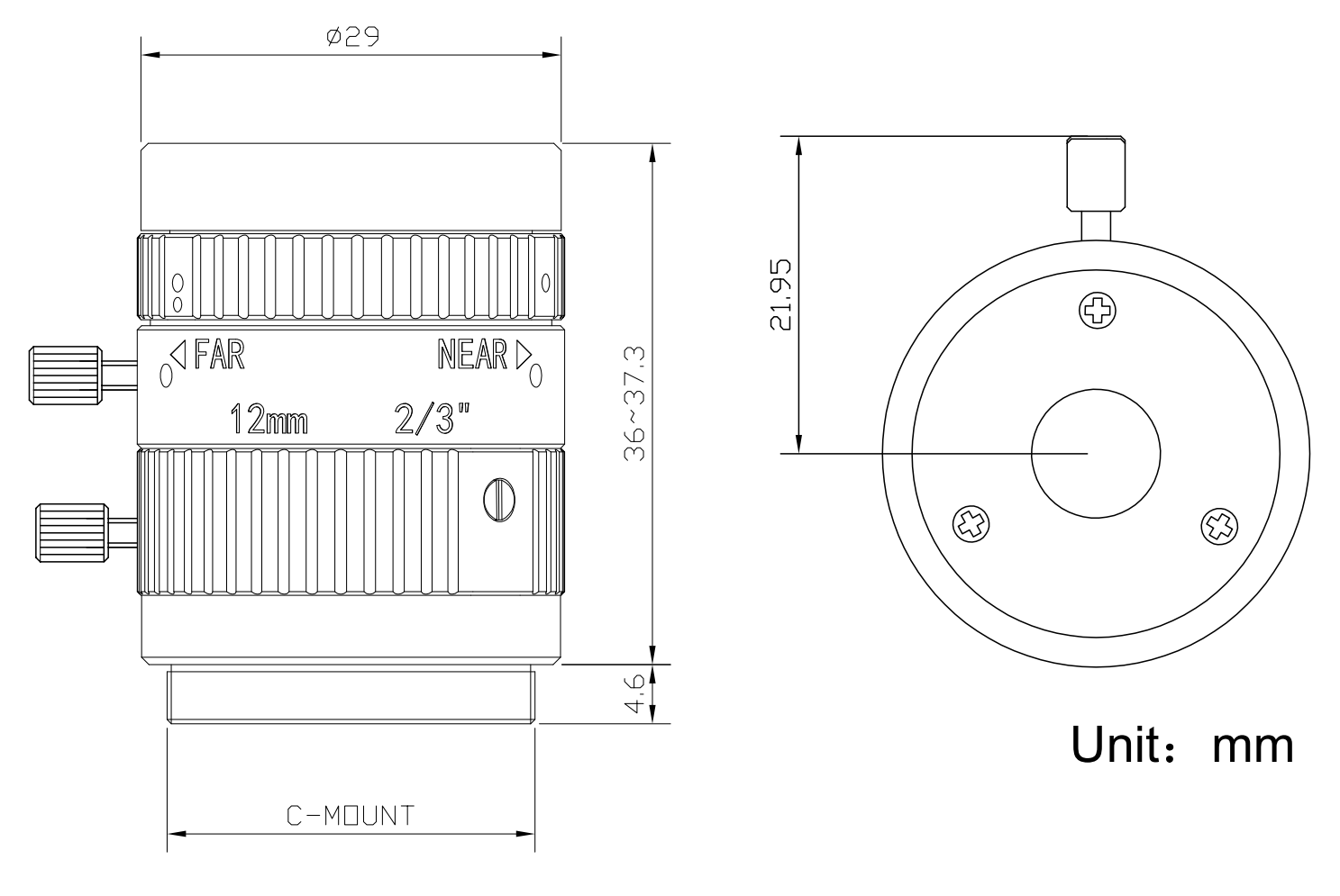 | 名称 | 12mm,F2.4,2/3",500万分辨率,C接口镜头 | |