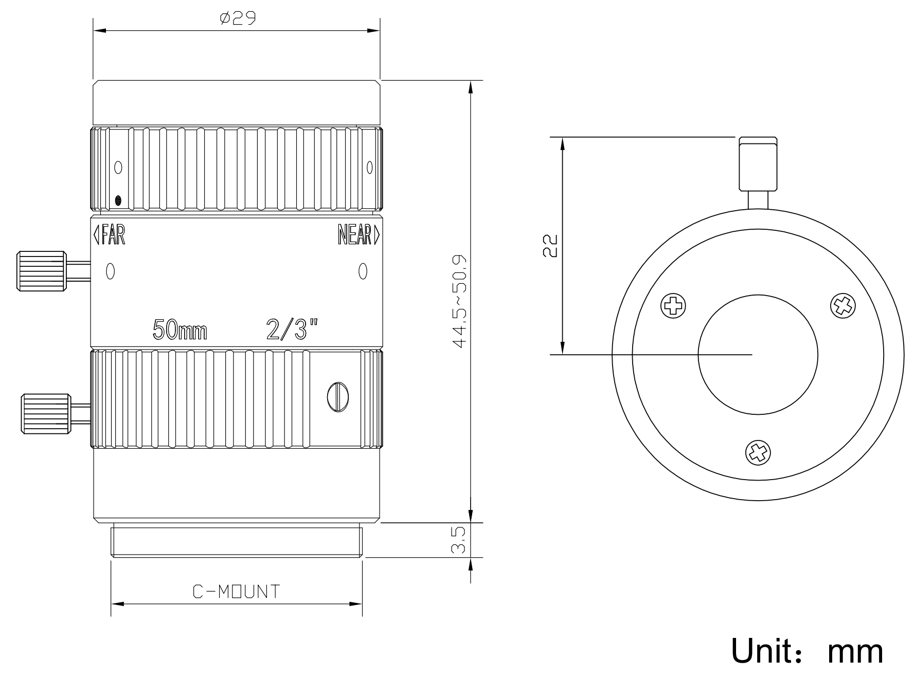 | 像面尺寸 | Φ11 mm(2/3'') | |