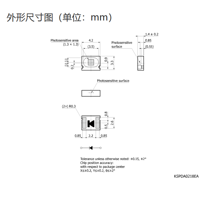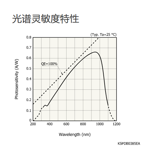 Ta = 25°C,典型值,感光灵敏度:λ = λp,暗电流:VR = 5 V,结电容:VR = 0 V,f = 1 MHz,除非另有说明 |