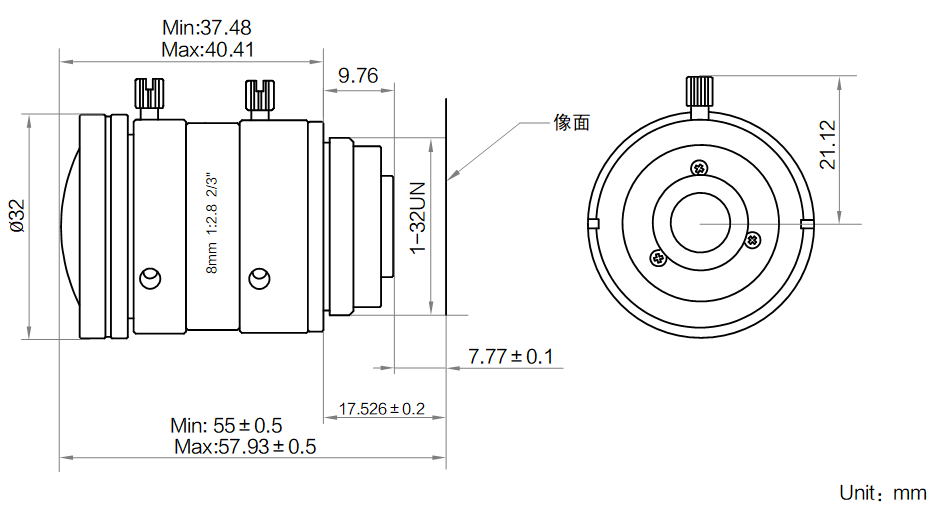 | 像面尺寸 | Φ11.2 mm(2/3'') | |