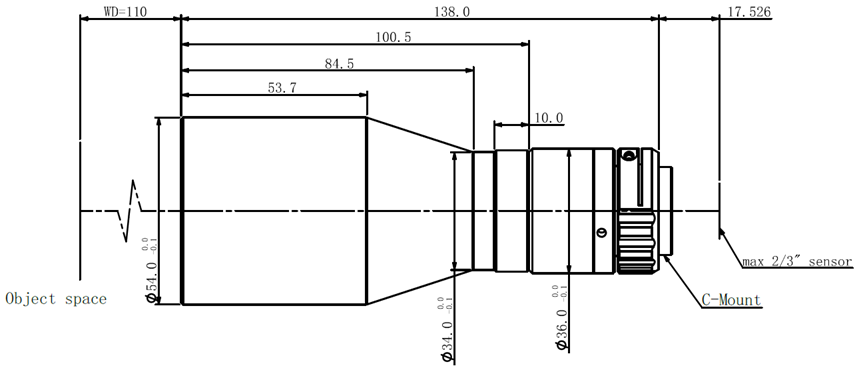 | 名称 | 110mm工作距,2/3",0.317x,不带同轴光接口 | |