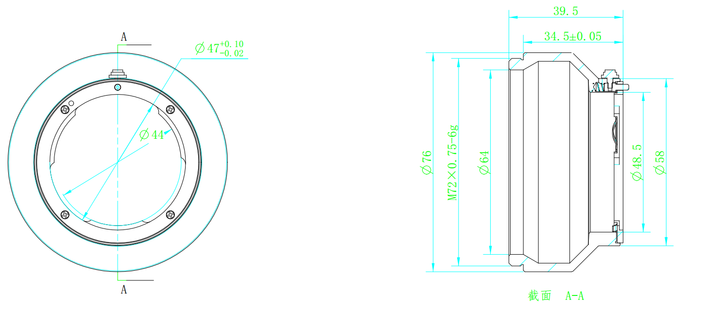 | 结构 | 相机接口 | M72 × 0.75,法兰后焦12mm |