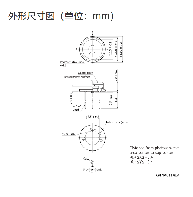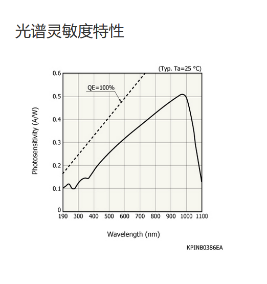 Ta = 25°C,典型值,感光灵敏度:λ = 960 nm,暗电流:VR = 100 V,截止频率:VR = 100 V,结电容:VR = 100 V,f = 1 MHz,噪声等效功率:VR = 100 V,λ = λp,除非另有说明 |
