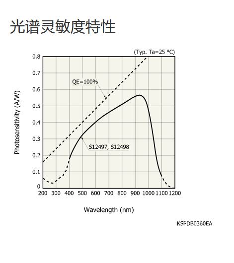 HAMAMATSU滨松 硅光电二极管 S12497 详细参数 受光面 9.5 × 9.5 mm 像素数 1 封装 带管脚的 PWB 散热 非冷却型 反向电压(最大值) 10 V 灵敏度波长范围 400 至 1100 nm 最大灵敏度波长(典型值) 920 nm 感光灵敏度(典型值) 0.57 A/W 暗电流(最大值) 200 pA 上升时间(典型值) 15 μs 结电容(典型值) 950 pF 测量条件 典型值 Ta=25°C,感光灵敏度:λ = 920 nm,暗电流:VR = 10 mV,结电容:VR = 0 V,f = 10 kHz,除非另有说明 0755 84689265 手机/微信:18320955412 QQ:2423332841 邮箱:2423332841@qq.com...