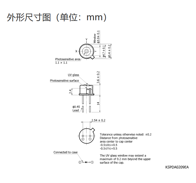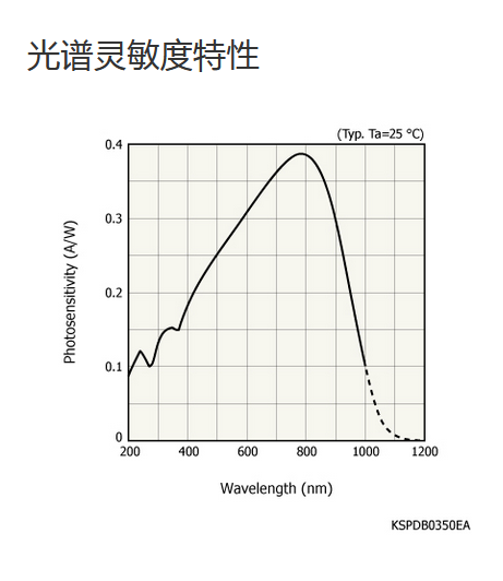Ta = 25°C,典型值,感光灵敏度:λ = 800 nm,暗电流:VR = 10 mV,结电容:VR = 0 V,f = 10 kHz,除非另有说明 |