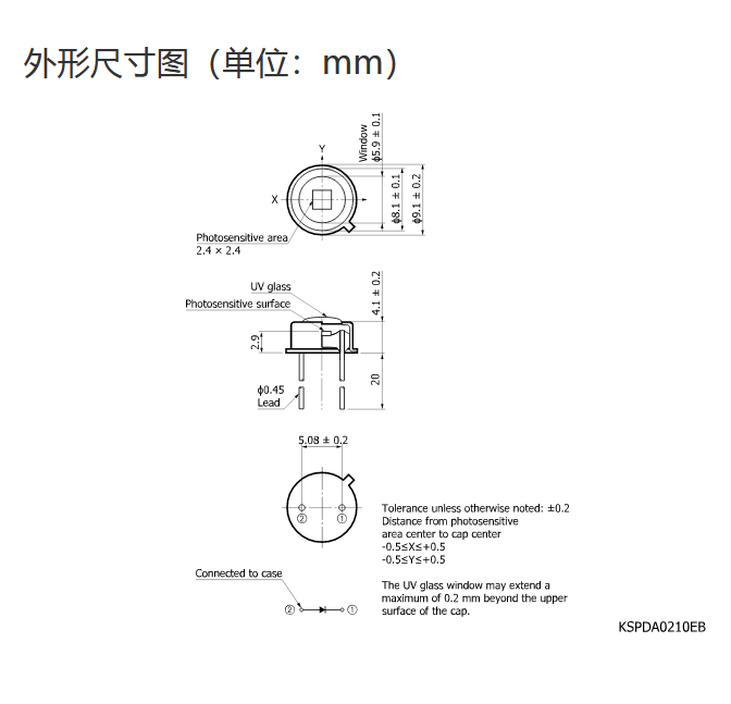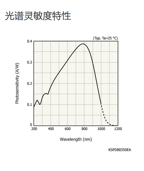 Ta = 25°C,典型值,感光灵敏度:λ = 800 nm,暗电流:VR = 10 mV,结电容:VR = 0 V,f = 10 kHz,除非另有说明 |