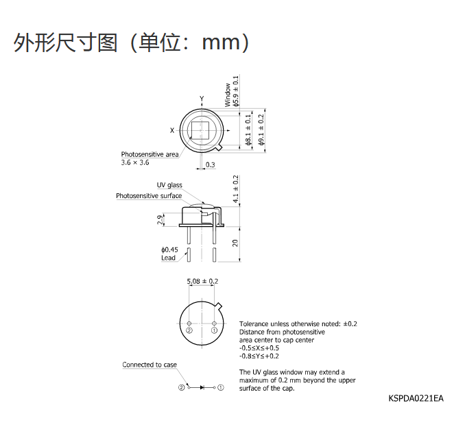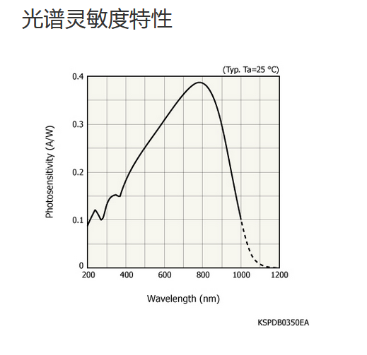 Ta = 25°C,典型值,感光灵敏度:λ = 800 nm,暗电流:VR = 10 mV,结电容:VR = 0 V,f = 10 kHz,除非另有说明 |