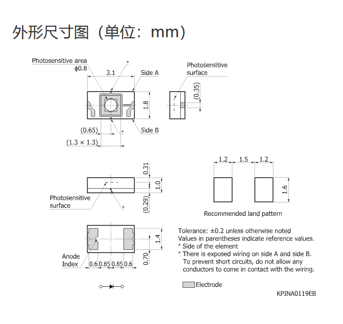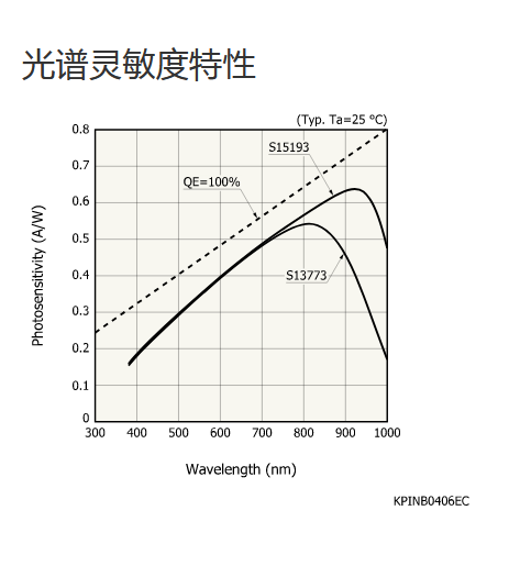 Ta = 25°C,典型值,感光灵敏度:λ = λp,暗电流:VR = 10 V,截止频率:VR = 10 V,RL = 50 Ω,-3 dB 结电容:λ = 830 nm VR = 10 V,f = 10 MHz,除非另有说明 |