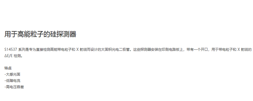 HAMAMATSU滨松 硅光电二极管 S14537-320 详细参数 受光面 28 × 28 mm 芯片厚度 320 ± 15 μm 非感光层厚度(正面) 1.5 μm 非感光层厚度(背面) 20 μm 满耗电压最大值 100 V 暗电流最大值 50 nA 截止频率 8 MHz 结电容 300 pF 0755 84689265 手机/微信:18320955412 QQ:2423332841 邮箱:2423332841@qq.com