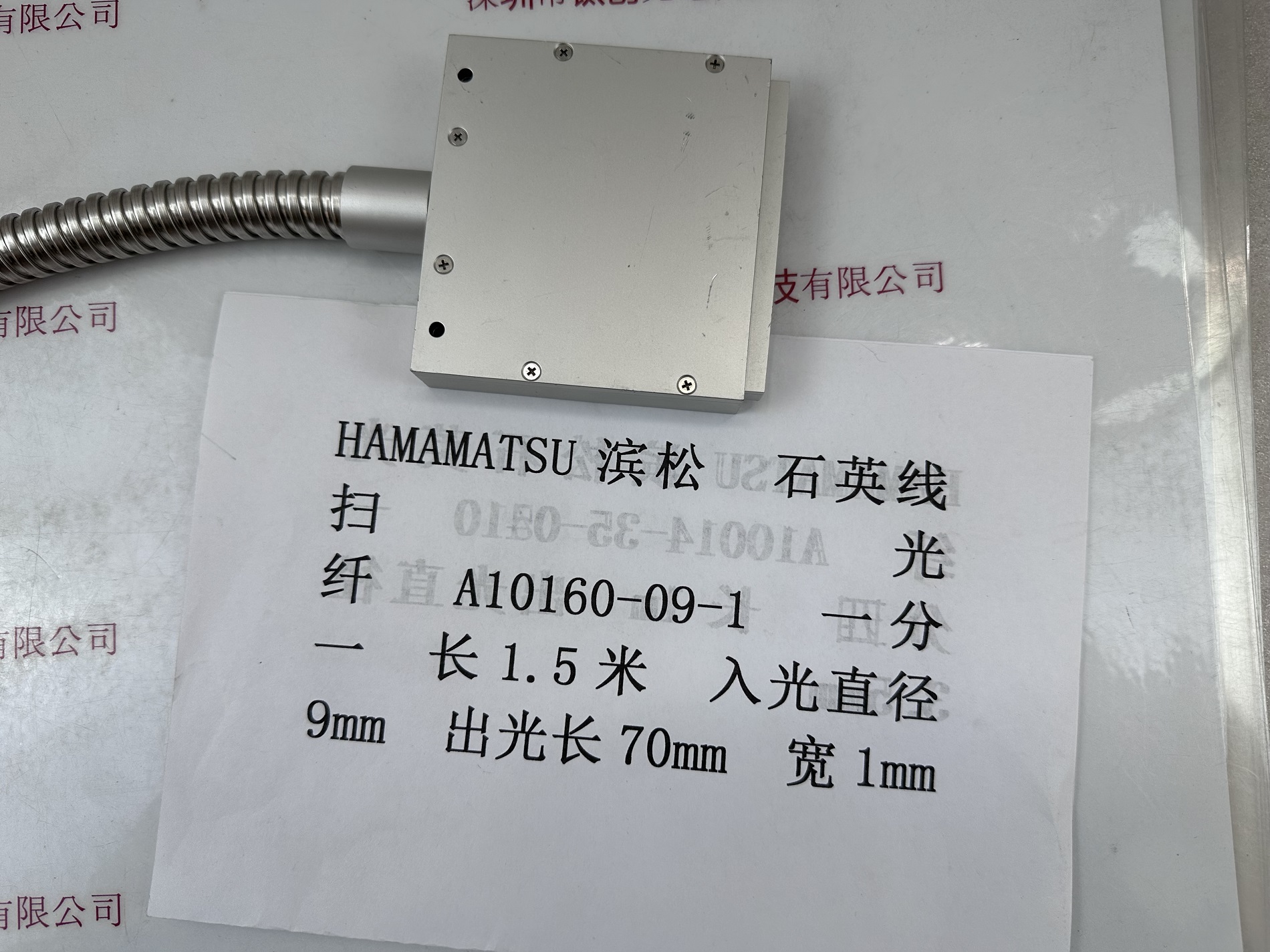 HAMAMATSU滨松 石英线扫光纤 A10160-09-1 一分一 长1.5米 入光直径9mm 出光长70mm 宽1mm 深圳市钛创光电科技有限公司 详情 请联系 电话:86 0755 84689265 手机/微信:18320955412 QQ:2423332841 地址:广东深圳平湖双拥街金立丰大厦