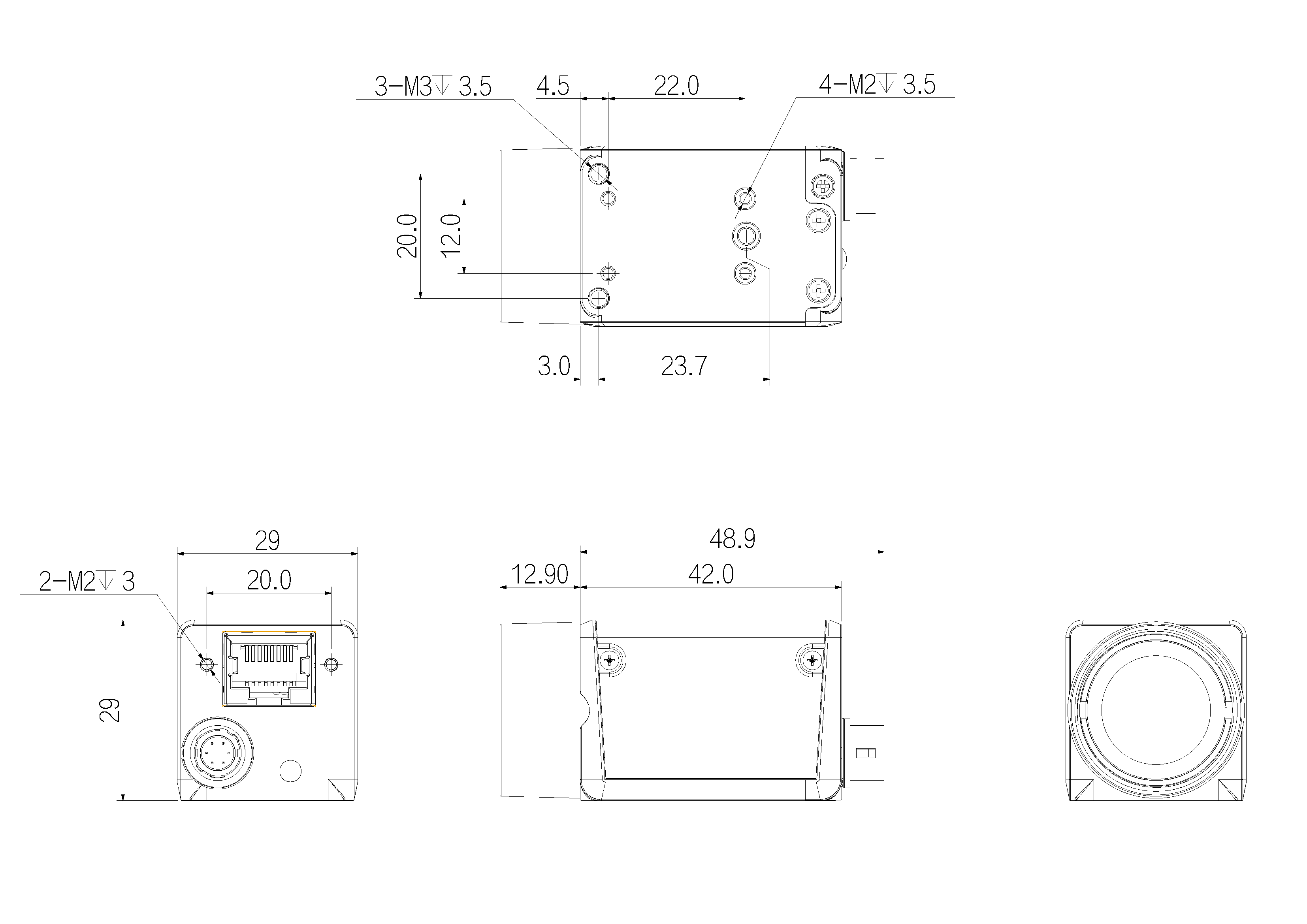 产品尺寸29mm*29mm*42mm(不含镜头座和后壳接口)