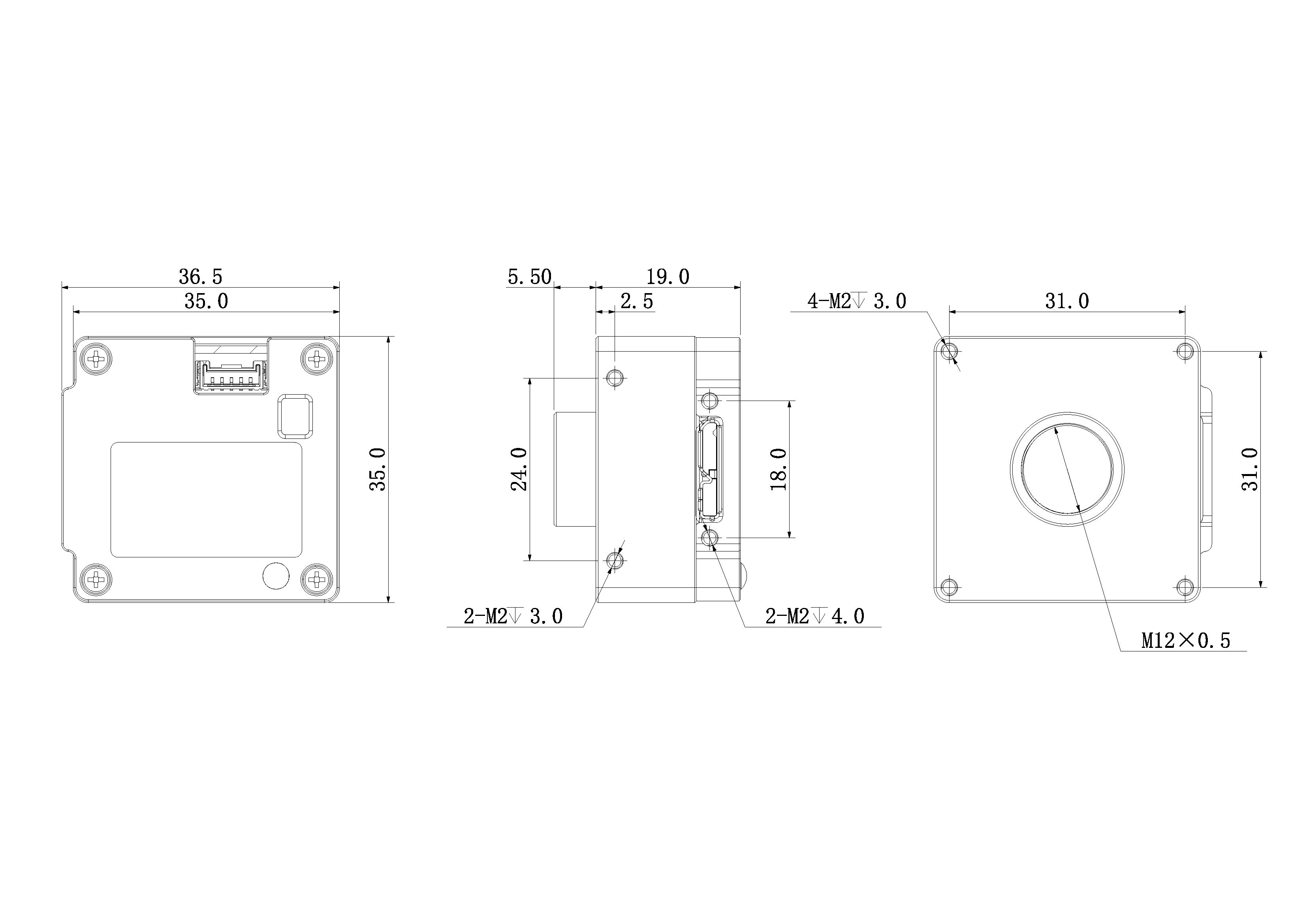 IRAYPLE 大华华睿 AB3600CU010 AB系列单板相机 基本参数 传感器 IMX178 传感器类型 1/1.8"CMOS 快门类型 Rolling 分辨率 3072 × 2048 帧率 60 fps 位深 10 黑白/彩色 彩色 像元 2.4 μm × 2.4 μm 图像参数 像素 6.2MP 信噪比 >38dB 宽动态范围 66dB 图像格式 BayerRG8/10/10Packed,BayerGB8/10/10Packed ROI 支持 增益 1~32 伽马 范围0~4,支持LUT 快门曝光 11μS~1S 图像采集模式 软件触发/硬件触发/自由运行 SPC 支持 性能参数 配置通道 支持2组用户自定义配置保存 缓存 64MB 接口参数 接口 USB3.0 GPIO接口 标准5芯触发接口:1路光耦隔离输入;1路光耦隔离输出;1路不带光耦隔离可配置输入输出; 镜头接口 M12 电源参数 供电方式 USB接口供电 功耗 ≈2.8W 结构参数 产品尺寸 35mm*35mm*19mm 净重 68 g 环境参数 储存温度 - 30℃~+80℃ 工作温度 - 30℃~+50℃ 手机/微信:18320955412 电话:86 0755 84689265 QQ:2423332841 邮箱:2423332841@q...