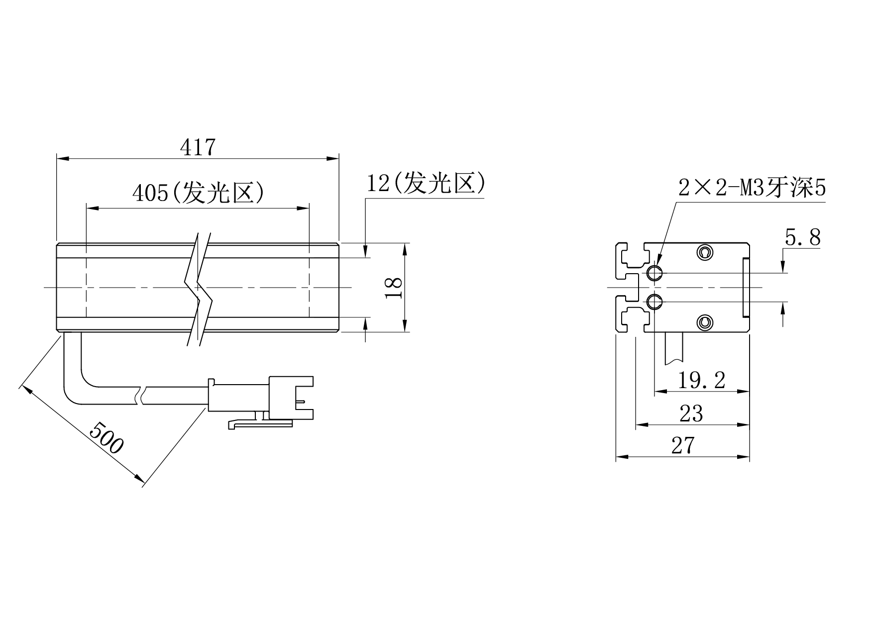 IRAYPLE 大华华睿 PFM-TX41718W-A-1A1 工业光源 基本参数 型号 PFM-TX41718W-A-1A1 类型 条形光源 颜色 白色 色温 6000 -6500K 功率 11 W 输入电压 DC24V 线缆长度 500 mm 外部接口 光源接口 SMP-03V-B 结构参数 灯珠排数 2 发光面尺寸 405×12 mm 冷却方式 自然冷却 漫射板 有 产品尺寸 417×18×27 mm 环境参数 工作温度 0~40℃ 工作湿度 20~85%RH(非凝结) 储存温度 -20~60℃ 储存湿度 20~85%RH(非凝结) 手机/微信:18320955412 电话:86 0755 84689265 QQ:2423332841 邮箱:2423332841@qq.com...