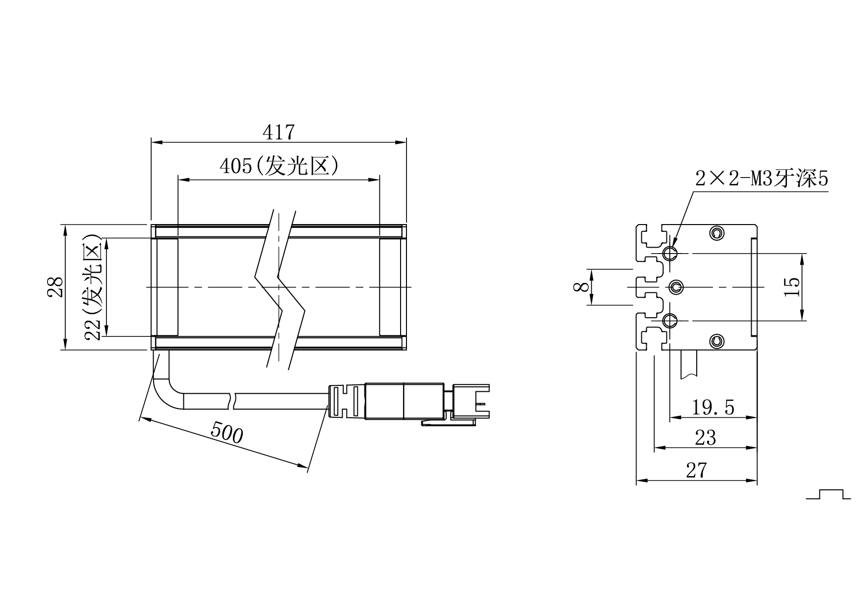 IRAYPLE 大华华睿 PFM-TX41728W-A-1A1 工业光源 基本参数 型号 PFM-TX41728W-A-1A1 类型 条形光源 颜色 白色 色温 6000 -6500K 功率 22 W 输入电压 DC24V 线缆长度 500 mm 外部接口 光源接口 SMP-03V-B 结构参数 灯珠排数 4 发光面尺寸 405×22 mm 冷却方式 自然冷却 漫射板 有 产品尺寸 417×28×27 mm 环境参数 工作温度 0~40℃ 工作湿度 20~85%RH(非凝结) 储存温度 -20~60℃ 储存湿度 20~85%RH(非凝结) 手机/微信:18320955412 电话:86 0755 84689265 QQ:2423332841 邮箱:2423332841@qq.com...