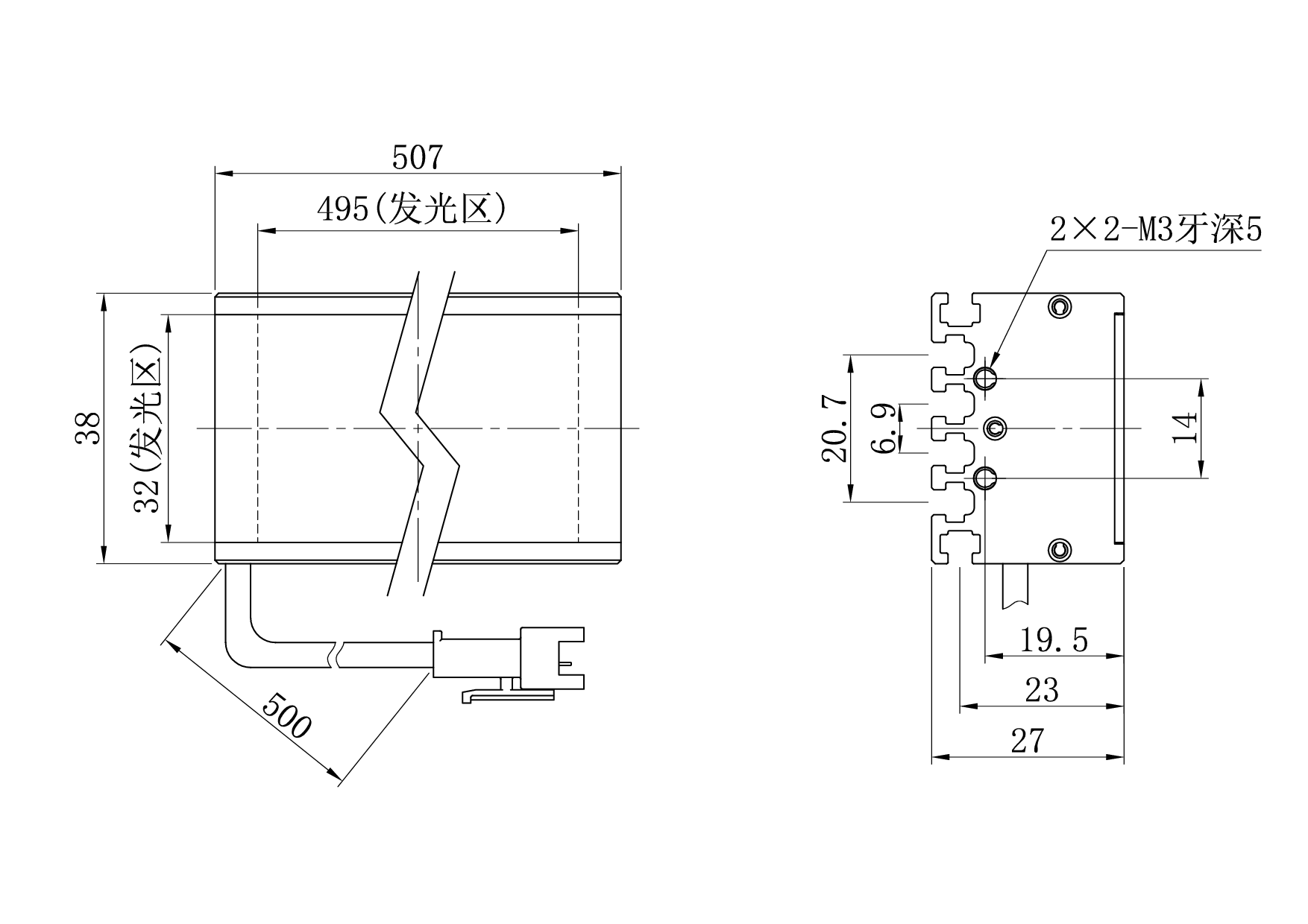 产品尺寸507×38×27 mm