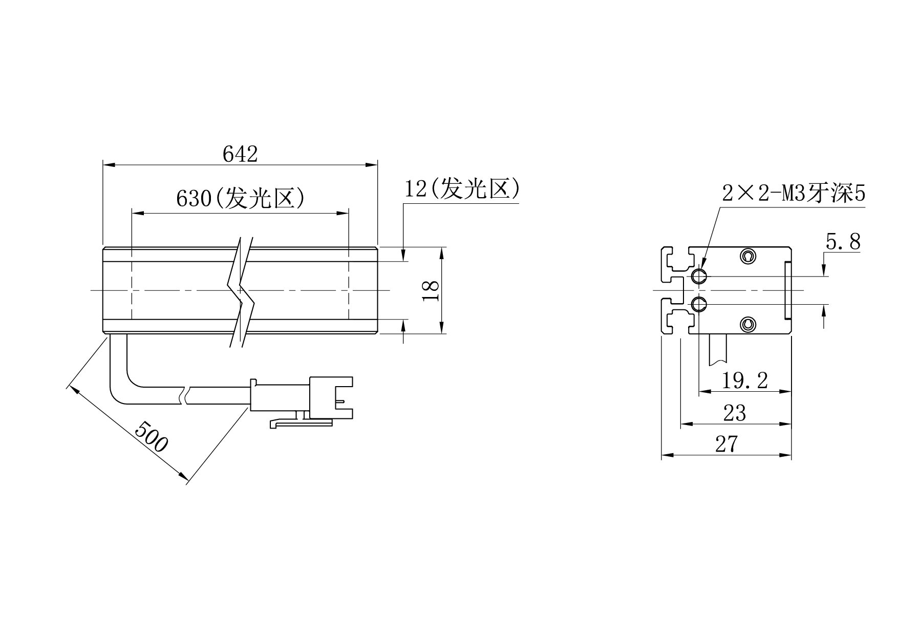 发光面尺寸630×12 mm
