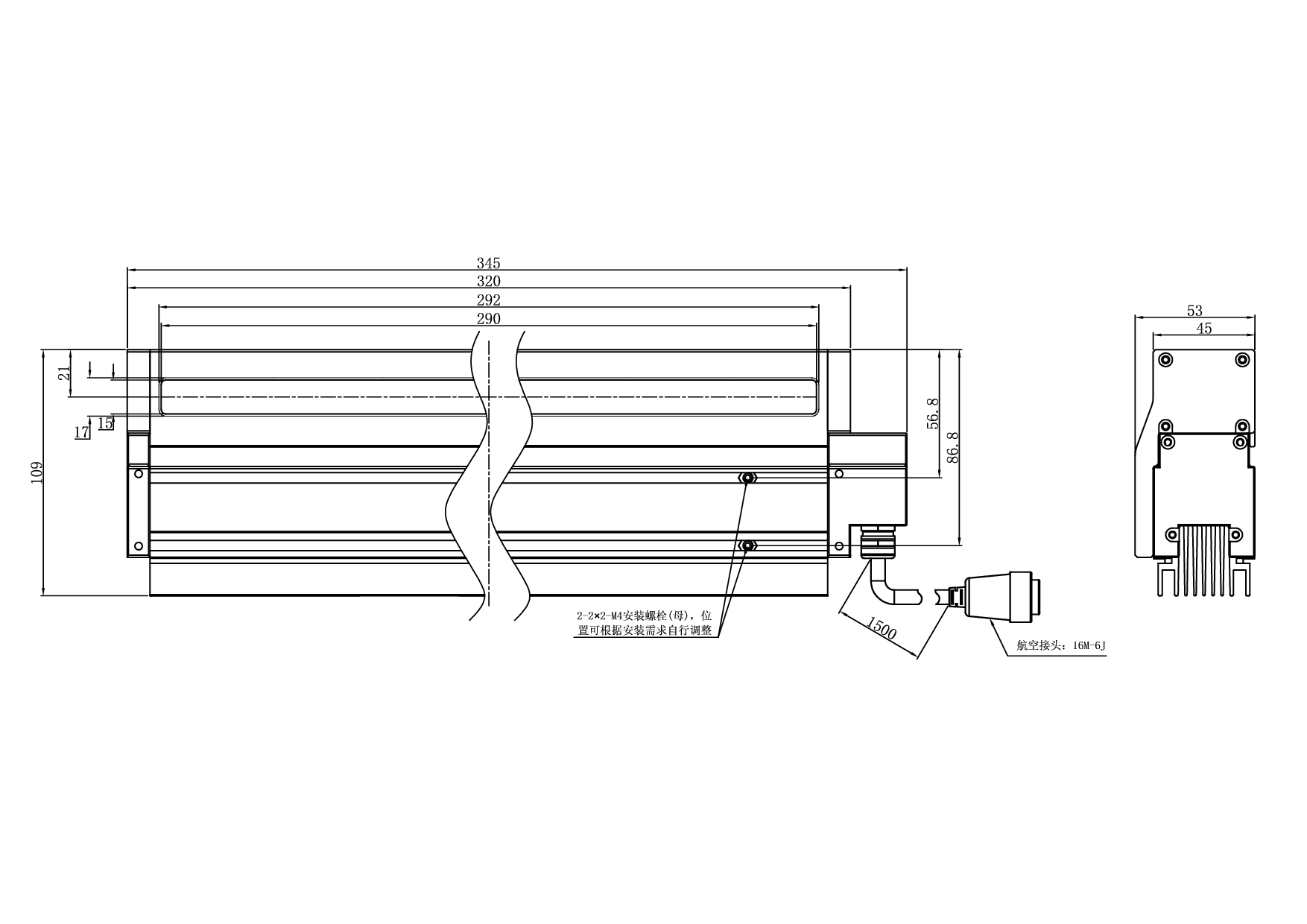 产品尺寸345×53×109 mm