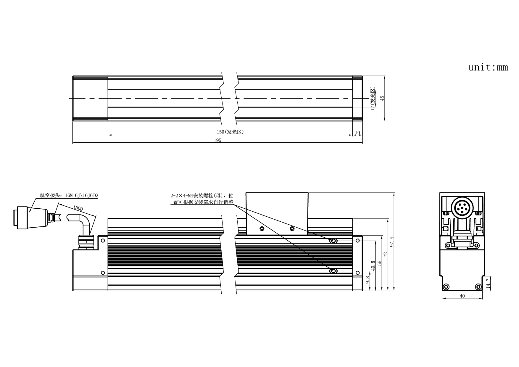 IRAYPLE 大华华睿 PFM-XSH150W-4A1 工业光源 基本参数 型号 PFM-XSH150W-4A1 类型 高亮线光源 颜色 白色 色温 6000 -6500K 功率 54 W 输入电压 DC48V 线缆长度 1500 mm 外部接口 光源接口 φ16 mm-6芯航空头 结构参数 发光面尺寸 150×17 mm 产品尺寸 195×97.4×45 mm 环境参数 工作温度 0~40℃ 工作湿度 20~85%RH(非凝结) 储存温度 -20~60℃ 储存湿度 20~85%RH(非凝结) 手机/微信:18320955412 电话:86 0755 84689265 QQ:2423332841 邮箱:2423332841@qq.com...