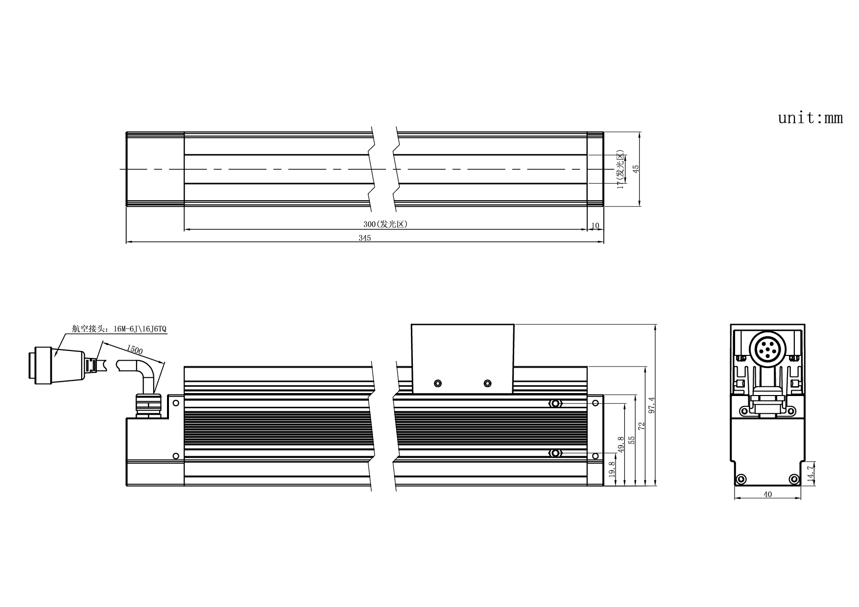 IRAYPLE 大华华睿 PFM-XSH300W-4A1 工业光源 基本参数 型号 PFM-XSH300W-4A1 类型 高亮线光源 颜色 白色 色温 6000 -6500K 功率 108 W 输入电压 DC48V 线缆长度 1500 mm 外部接口 光源接口 φ16 mm-6芯航空头 结构参数 发光面尺寸 300×17 mm 产品尺寸 345×97.4×45 mm 环境参数 工作温度 0~40℃ 工作湿度 20~85%RH(非凝结) 储存温度 -20~60℃ 储存湿度 20~85%RH(非凝结) 手机/微信:18320955412 电话:86 0755 84689265 QQ:2423332841 邮箱:2423332841@qq.com...