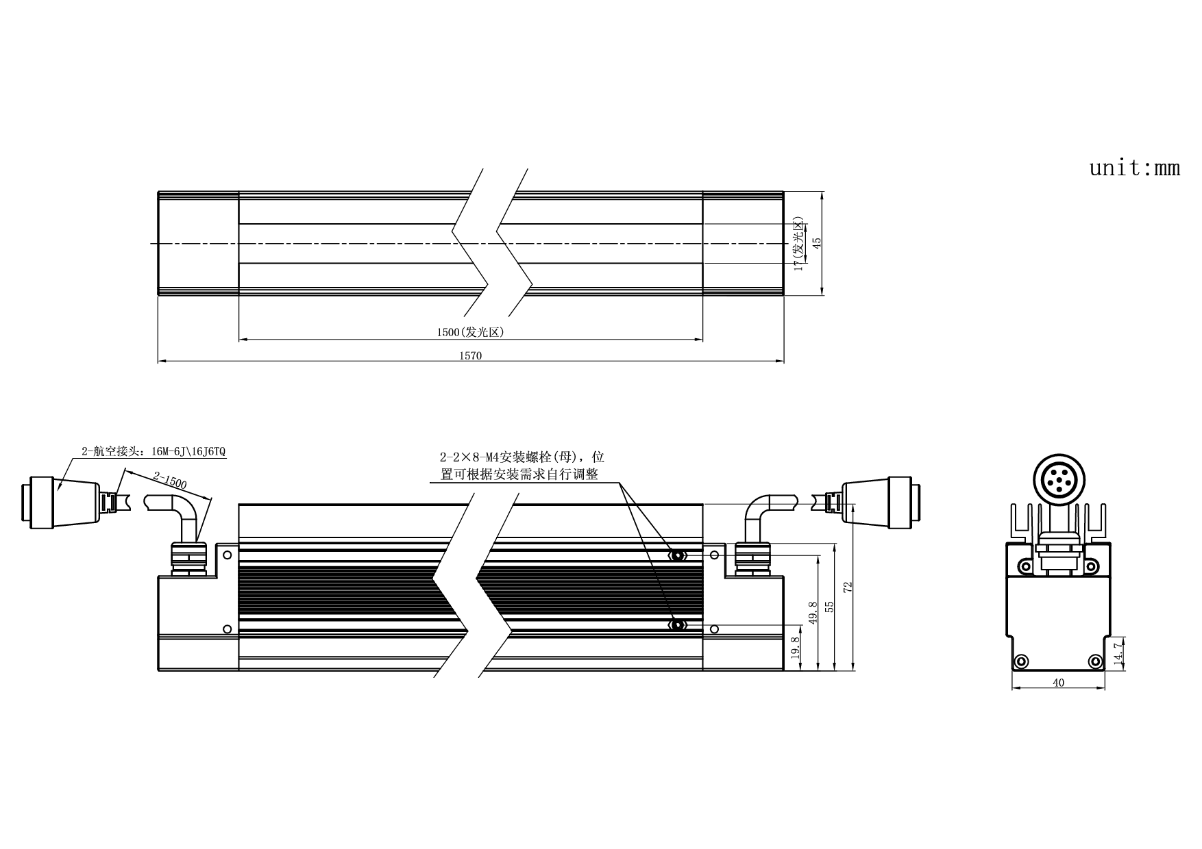 IRAYPLE 大华华睿 PFM-XS1500W-4A1 工业光源 基本参数 型号 PFM-XS1500W-4A1 类型 线光源 颜色 白色 色温 6000 -6500K 功率 192 W 输入电压 DC48V 线缆长度 1500 mm 外部接口 光源接口 φ16 mm-6芯航空头 结构参数 发光面尺寸 1500×17 mm 产品尺寸 1570×45×72 mm 环境参数 工作温度 0~40℃ 工作湿度 20~85%RH(非凝结) 储存温度 -20~60℃ 储存湿度 20~85%RH(非凝结) 手机/微信:18320955412 电话:86 0755 84689265 QQ:2423332841 邮箱:2423332841@qq.com...