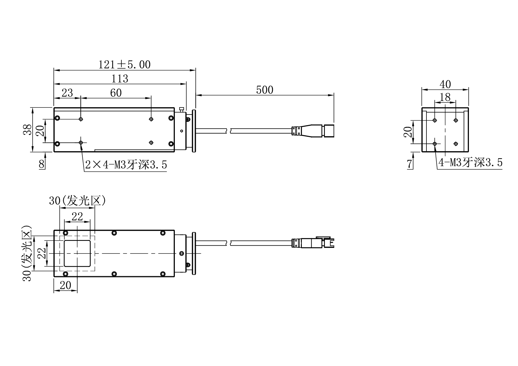 IRAYPLE 大华华睿 PFM-TZP30W-2A2 工业光源 基本参数 型号 PFM-TZP30W-2A2 类型 平行同轴光源 颜色 白色 色温 6000 -6500K 功率 3 W 输入电压 DC5V 线缆长度 500 mm 外部接口 光源接口 SMP-03V-B-B(1:NC 2:输出+:输出-) 结构参数 发光面尺寸 30×30 mm 产品尺寸 121×40×38 mm 环境参数 工作温度 0~40℃ 工作湿度 20~85%RH(非凝结) 储存温度 -20~60℃ 储存湿度 20~85%RH(非凝结) 手机/微信:18320955412 电话:86 0755 84689265 QQ:2423332841 邮箱:2423332841@qq.com...