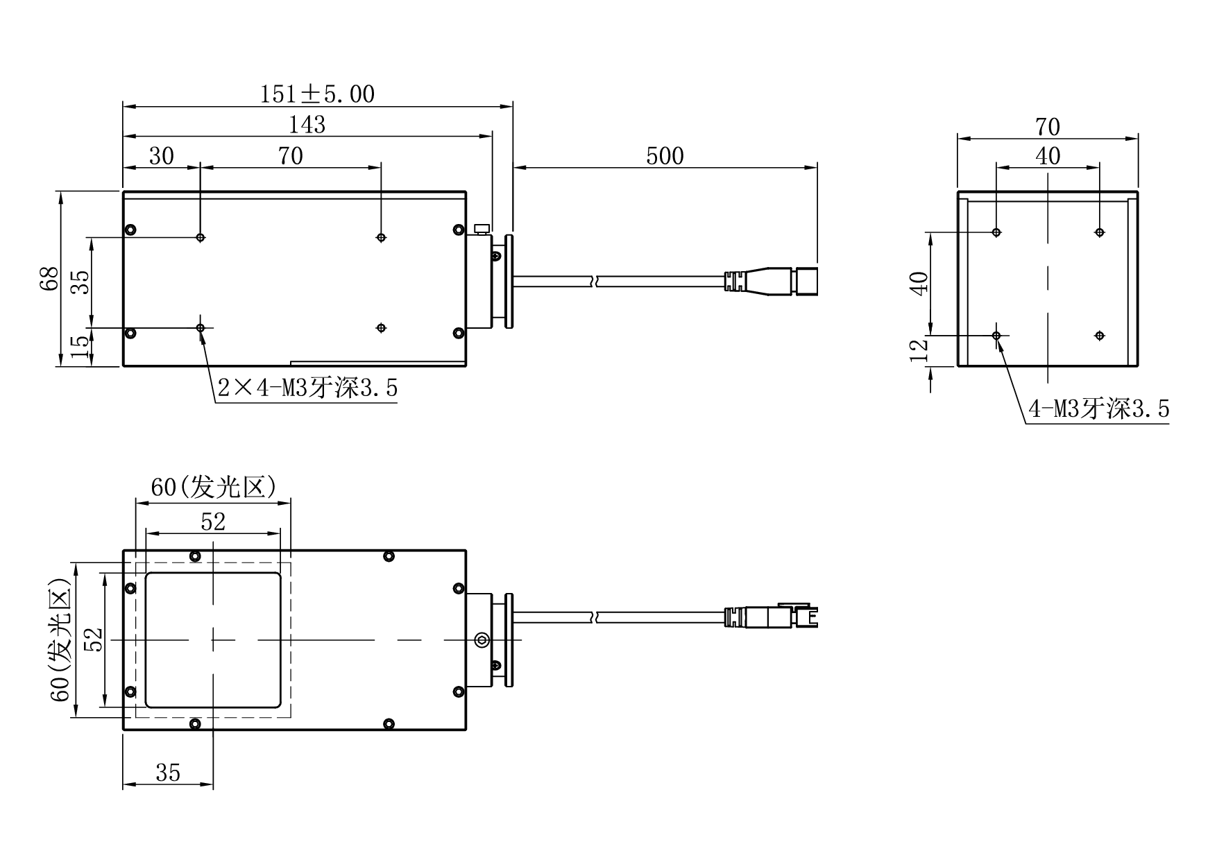 IRAYPLE 大华华睿 PFM-TZP60W-2A2 工业光源 基本参数 型号 PFM-TZP60W-2A2 类型 平行同轴光源 颜色 白色 色温 6000 -6500K 功率 3 W 输入电压 DC5V 线缆长度 500 mm 外部接口 光源接口 SMP-03V-B-B(1:NC 2:输出+:输出-) 结构参数 发光面尺寸 60×60 mm 产品尺寸 151×70×68 mm 环境参数 工作温度 0~40℃ 工作湿度 20~85%RH(非凝结) 储存温度 -20~60℃ 储存湿度 20~85%RH(非凝结) 手机/微信:18320955412 电话:86 0755 84689265 QQ:2423332841 邮箱:2423332841@qq.com...