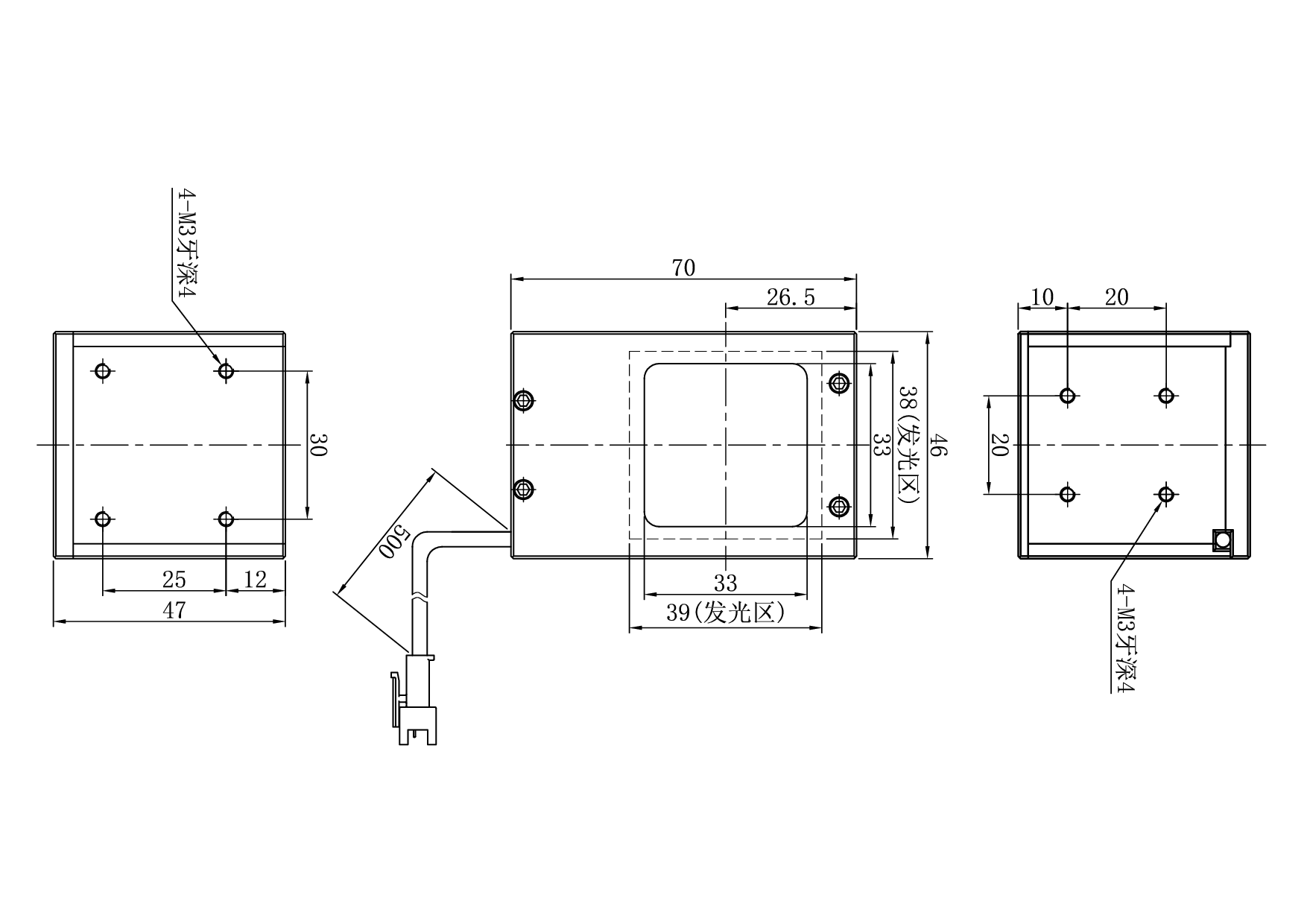 IRAYPLE 大华华睿 PFM-TZ40W-1A1 工业光源 基本参数 型号 PFM-TZ40W-1A1 类型 标准同轴光源 颜色 白色 色温 6000 -6500K 功率 6.3 W 输入电压 DC24V 线缆长度 500 mm 外部接口 光源接口 SMP-03V-B-A(1:输出+ 2:NC3:输出-) 结构参数 发光面尺寸 39×38 mm 产品尺寸 70×46×47 mm 环境参数 工作温度 0~40℃ 工作湿度 20~85%RH(非凝结) 储存温度 -20~60℃ 储存湿度 20~85%RH(非凝结) 手机/微信:18320955412 电话:86 0755 84689265 QQ:2423332841 邮箱:2423332841@qq.com...