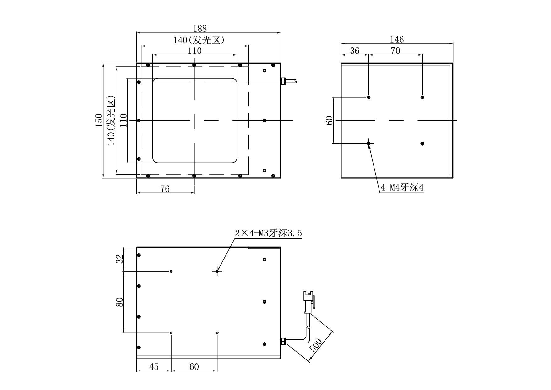 发光面尺寸140×140 mm