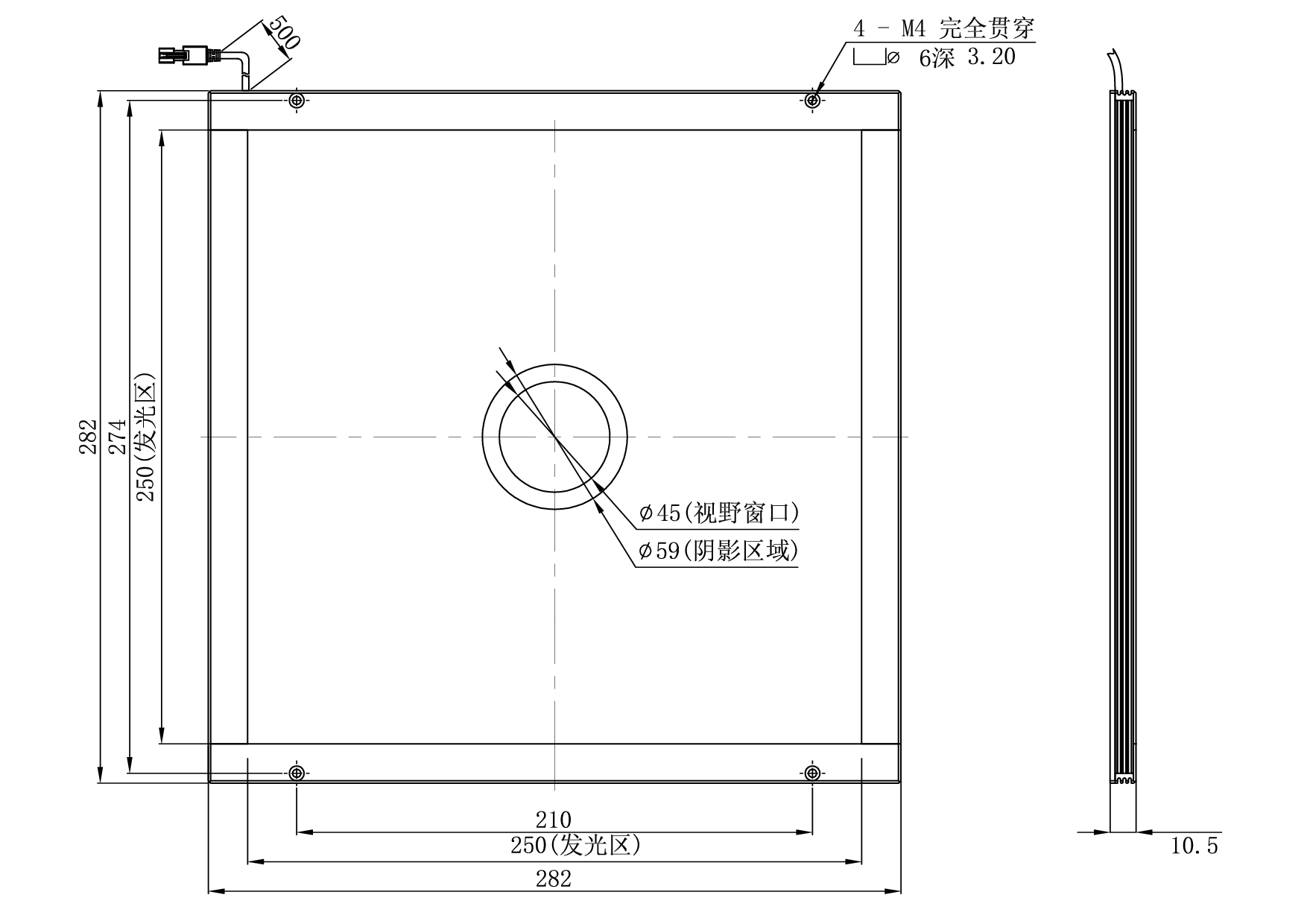 发光面尺寸250×250 mm
