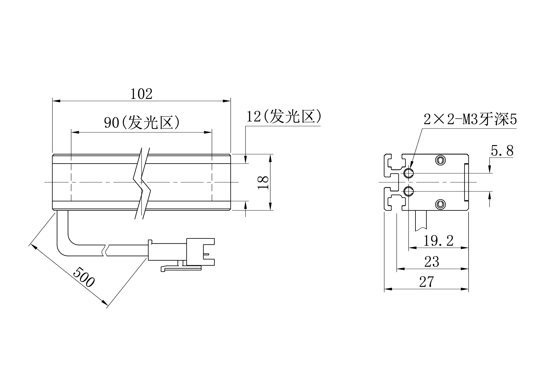发光面尺寸90×12 mm