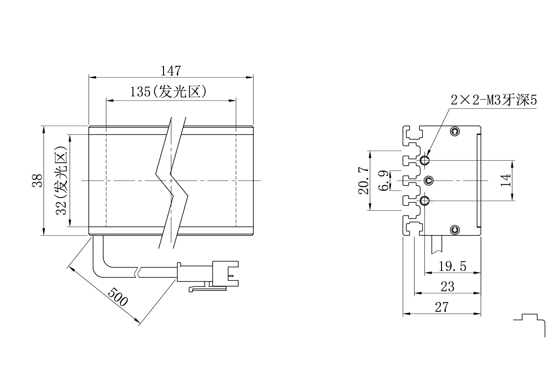 发光面尺寸135×32 mm