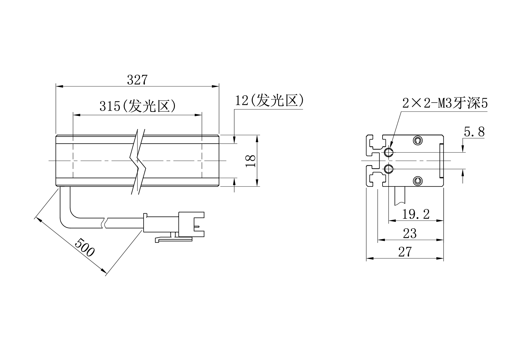 IRAYPLE 大华华睿 PFM-TXHU32718W-A-1A1 工业光源 基本参数 型号 PFM-TXHU32718W-A-1A1 类型 高均匀条形光源 颜色 白色 色温 6000 -6500K 功率 3.5 W 输入电压 DC24V 线缆长度 500 mm 外部接口 光源接口 SMP-03V-B 结构参数 灯珠排数 1 发光面尺寸 315×12 mm 冷却方式 自然冷却 漫射板 有 产品尺寸 327×18×27 mm 环境参数 工作温度 0~40℃ 工作湿度 20~85%RH(非凝结) 储存温度 -20~60℃ 储存湿度 20~85%RH(非凝结) 手机/微信:18320955412 电话:86 0755 84689265 QQ:2423332841 邮箱:2423332841@qq.com...