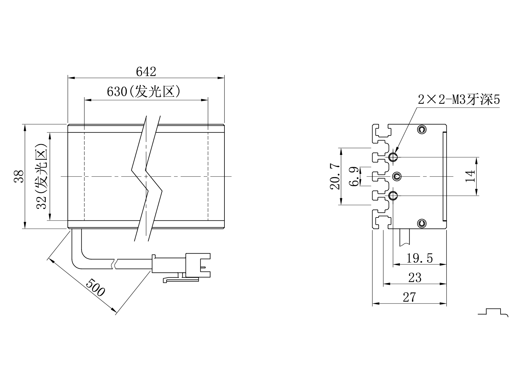IRAYPLE 大华华睿 PFM-TXHU64238W-A-1A1 工业光源 基本参数 型号 PFM-TXHU64238W-A-1A1 类型 高均匀条形光源 颜色 白色 色温 6000 -6500K 功率 23.8 W 输入电压 DC24V 线缆长度 500 mm 外部接口 光源接口 SMP-03V-B 结构参数 灯珠排数 5 发光面尺寸 630×32 mm 冷却方式 自然冷却 漫射板 有 产品尺寸 642×38×27 mm 环境参数 工作温度 0~40℃ 工作湿度 20~85%RH(非凝结) 储存温度 -20~60℃ 储存湿度 20~85%RH(非凝结) 手机/微信:18320955412 电话:86 0755 84689265 QQ:2423332841 邮箱:2423332841@qq.com...