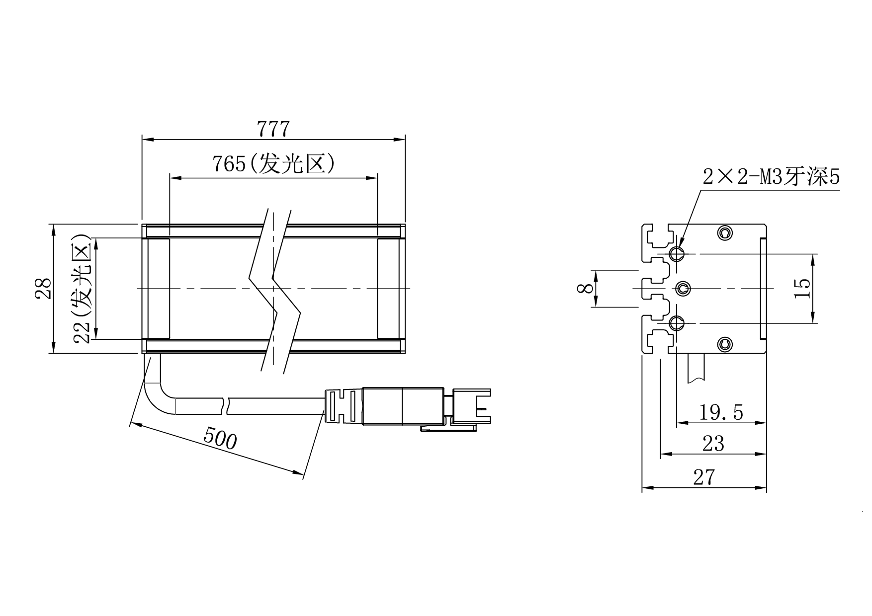 IRAYPLE 大华华睿 PFM-TXHU77728W-A-1A1 工业光源 基本参数 型号 PFM-TXHU77728W-A-1A1 类型 高均匀条形光源 颜色 白色 色温 6000 -6500K 功率 22.1 W 输入电压 DC24V 线缆长度 500 mm 外部接口 光源接口 SMP-03V-B 结构参数 灯珠排数 3 发光面尺寸 765×22 mm 冷却方式 自然冷却 漫射板 有 产品尺寸 777×28×27 mm 环境参数 工作温度 0~40℃ 工作湿度 20~85%RH(非凝结) 储存温度 -20~60℃ 储存湿度 20~85%RH(非凝结) 手机/微信:18320955412 电话:86 0755 84689265 QQ:2423332841 邮箱:2423332841@qq.com...