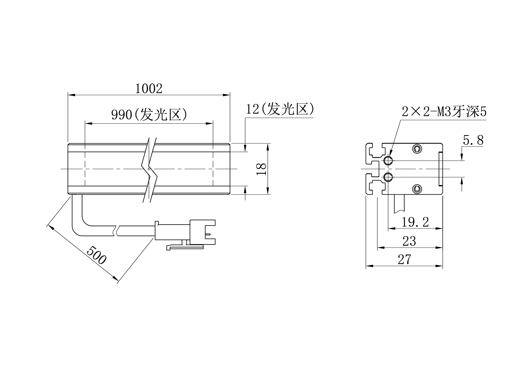 发光面尺寸990×12 mm