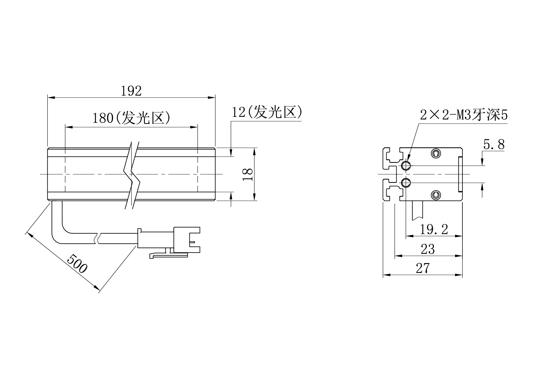 产品尺寸192×18×27 mm