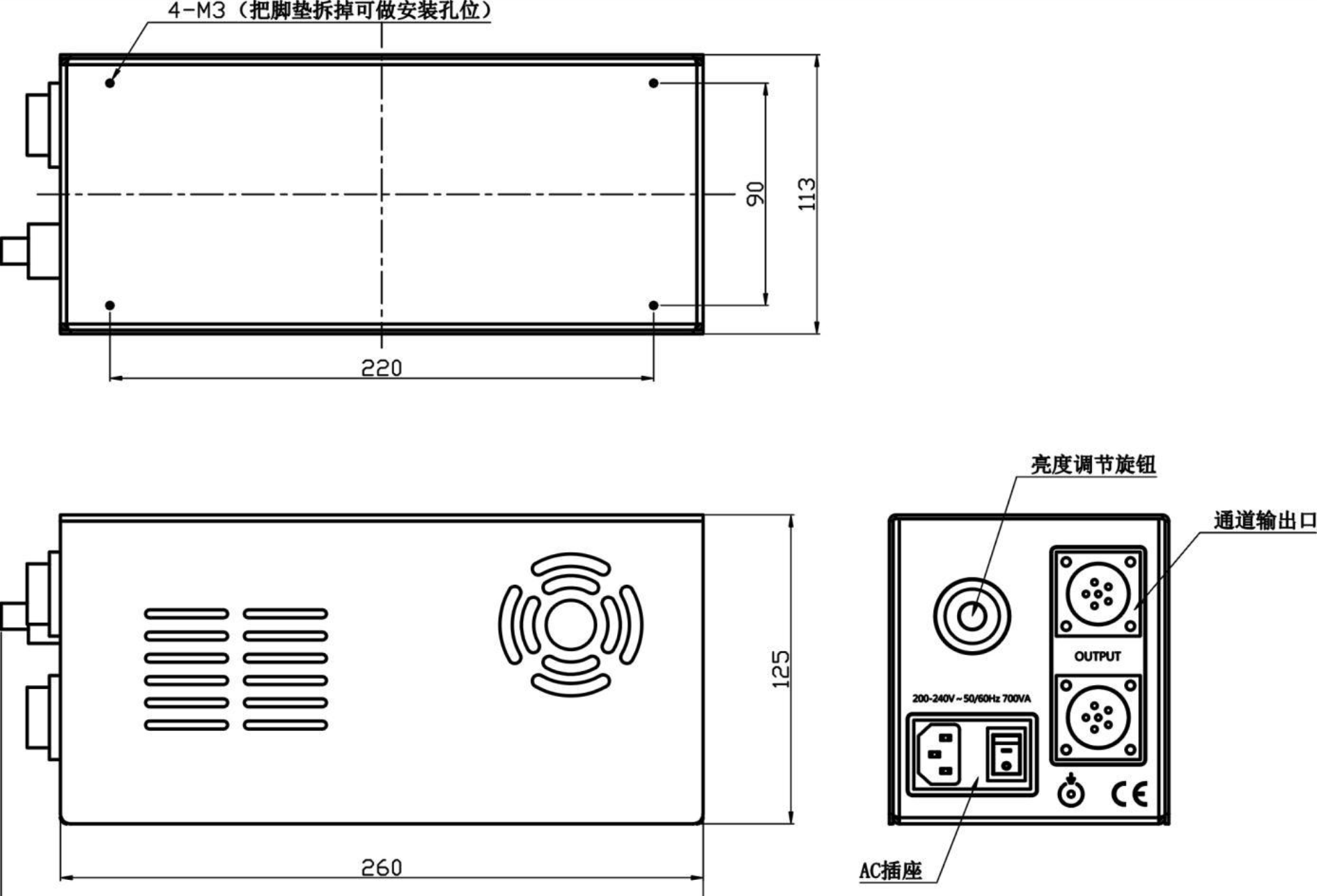IRAYPLE 大华华睿 LC-AV24300-1-5A1 光源控制器 基本参数 类型 模拟恒压控制器 型号 LC-AV24300-1-5A1 驱动方式 恒压 亮度控制 可变电压控制/面板旋钮 通道数 1 掉电参数保存 支持 电器特性 输入电压 AC100-240V 50/60HZ 输出电压 DC24 V 输出电流 12.5 A(单通道) 输出总电流 12.5 A 输出功率 300 W 供电接口 φ24-6芯航空头(1 光源+、2 光源-3 、NC、4 NC5 风扇-、6 风扇+) 短路保护 支持 过压保护 支持 过流保护 支持 结构参数 安装方式 螺丝安装 产品尺寸 260 mm ×113 mm ×125 mm 外壳材料 钣金 风扇控制 支持 冷却方式 强制冷却 环境参数 工作温度 0~40℃ 工作湿度 20~85%RH(非凝结) 储存温度 -20~60℃ 储存湿度 20~85%RH(非凝结) 手机/微信:18320955412 电话:86 0755 84689265 QQ:2423332841 邮箱:2423332841@qq.com...