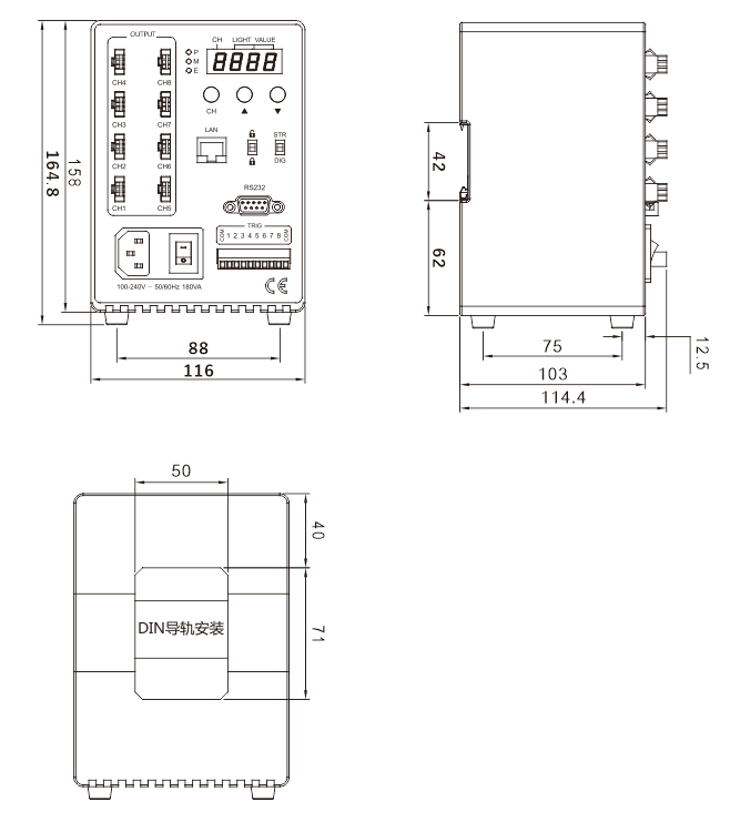 产品尺寸116 mm ×114.4 mm ×164.8 mm