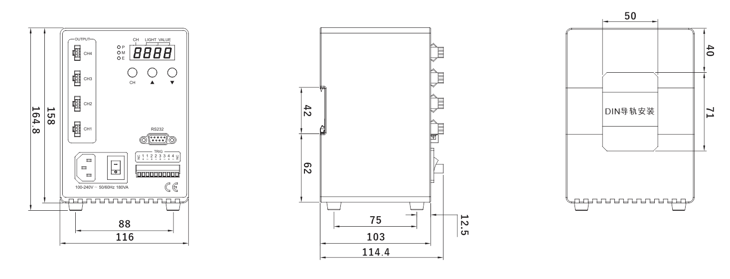 产品尺寸116 mm ×114.4 mm ×164.8 mm